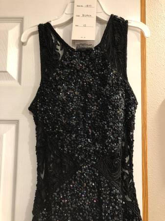 Dresses Black Sequins (New $600) or Red Sparkles (New $500)has option can have train unbuttoned for floor if desired was "used once like new" $200 each,