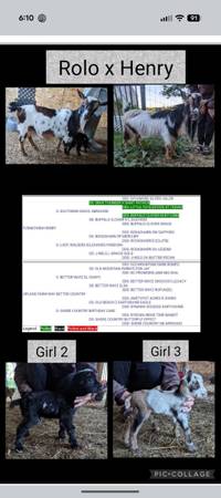 This is Henry. He is very friendly to be around and has always been very sweet to us, my son, and even the kitties that go in the pen with him. He's very sweet and gentle to the ladies and we will cover does while on a leash. He also trims on the milking stand nicely and usually will jump up when you get him close to it. He's been around dogs and isn't bothered by them. Currently running with other bucks in our herd. Pictures of his offspring in this post that he has given us. He was used previously by another farm and was successful there as well.